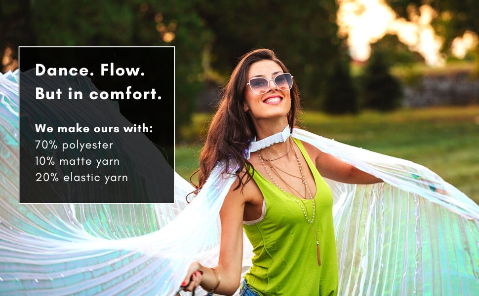 That's why our Veils are made with a unique blend of flowy, reflective, and aerodynamic materials that'll make looking good a breeze. Even simple movements can dazzle spectators as you dance your night away!